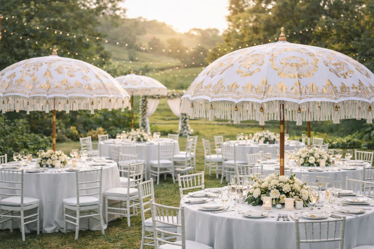 Bali Şemsiyesi son zamanlarda Dügün Organizasyon’larında çok fazla tercih edilmektedir. bu eşsiz tamamen el yapımı olan Şemsiye’ler ile organizasyonlarınızda farklı bir ambiyans yaratabilirsiniz. Bali Dügün Şemsiyesi özellik açısından farkındalık yaratmanıza fazlasıyla yetecektir , Gusto Oriental olarak bir ilke imza atarak sizler için bu ürünlerin ithalatını yapmaktayız.