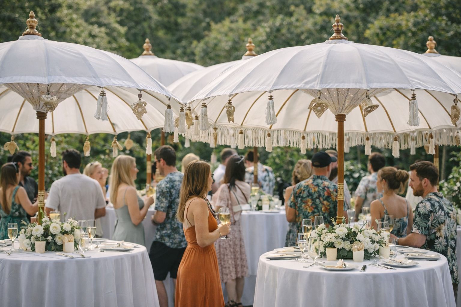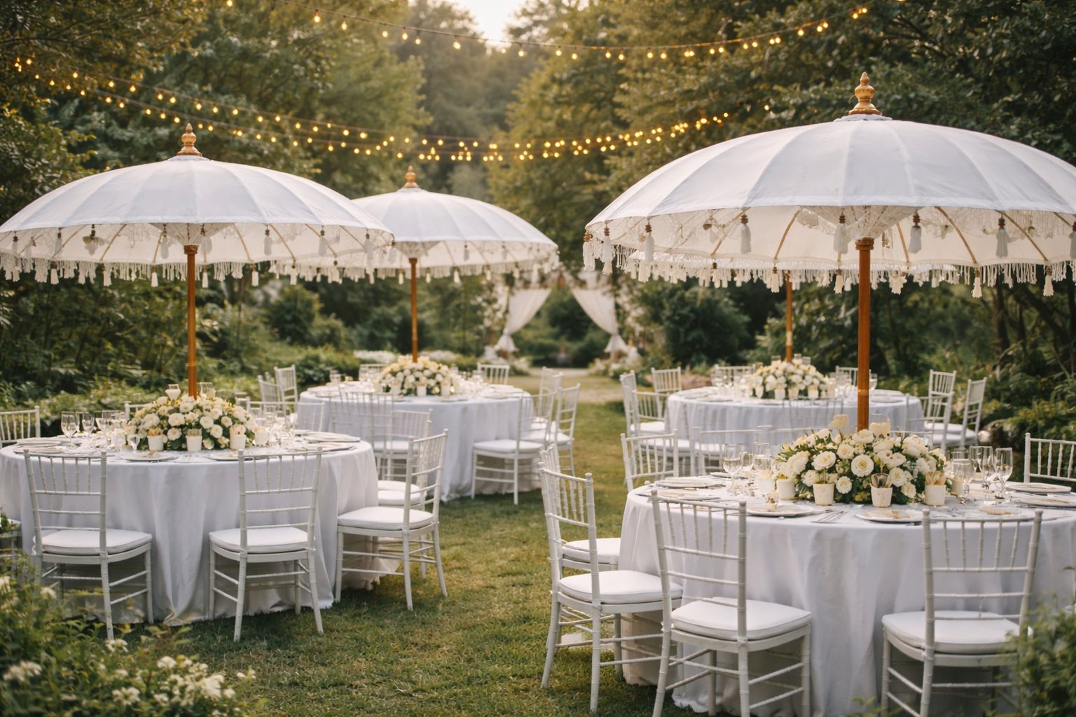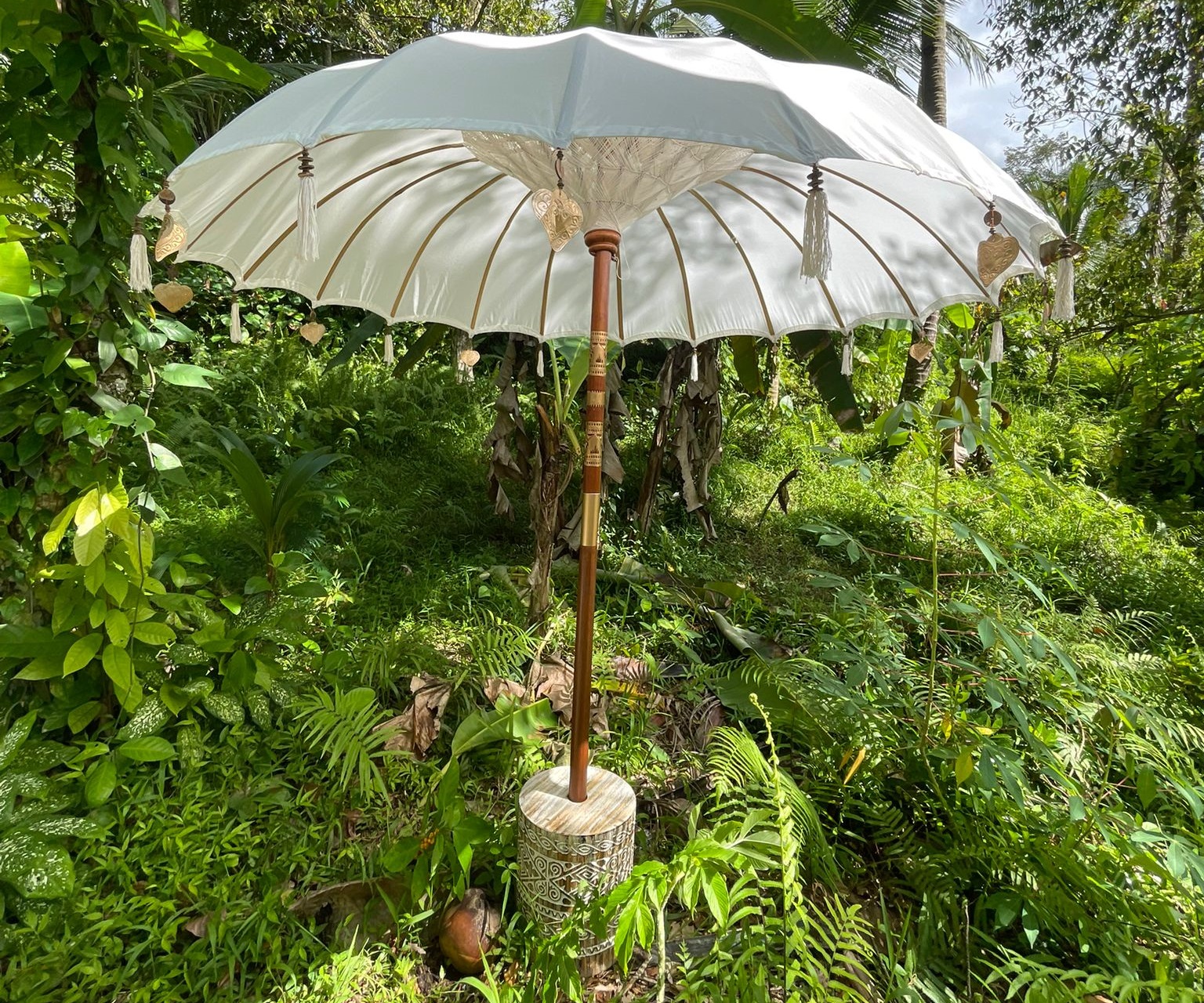 Gusto Oriental olarak yenilikçiliğe önem veriyoruz. Müşterilerimizden biri evinin bahçesinde bir düğün planlıyordu ve egzotik pembe temalı bir ortam istiyordu. Bu nedenle, sarı püsküllü ve sedef kabuklu kiraz kırmızısı şemsiyemizi tasarladık. Çok memnun kaldılar ve on tane satın aldılar. Bunun üzerine ürün yelpazemize eklemeye karar verdik ve o zamandan beri çok beğeniliyor. Gerçekten eşsiz bir düğün bahçe partisi için bizi arayın ve birlikte özel bir şey tasarlayalım. Bu, son iki yıldaki en çok satan ürünümüz.